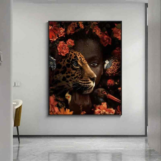 Affiche En Toile Imprimée Léopard Femmes Africaines Style Moderne Sans Cadre Poster Canvas Déco Intérieur