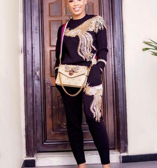 African Stretch Pitted Cotton Diamond Casual Pants Suit
