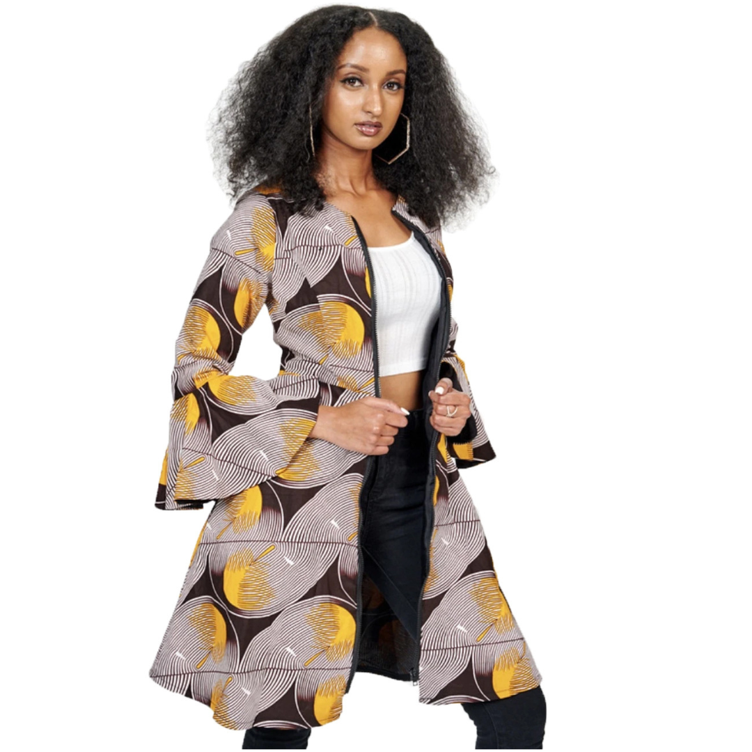 Motifs inspirés des esthétiques africaines contemporaines, couleurs équilibrées, style affirmé sans être excessif.