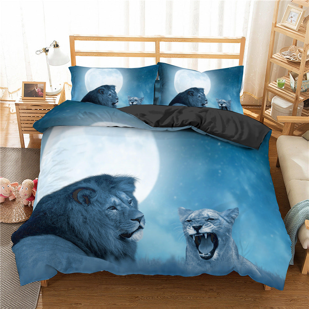 Ensemble De Literie Imprimé Numérique Lion D'Afrique 3 Pièces Pour Chambre Sauvage Contemporaine